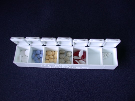 The next thing you MUST do for yourself is to purchase a pill box organizer. These are (in my opinion–indispensable). Since I had to distribute meds 4X a day I purchased an organizer that had four rows of seven-day pockets with snap-lock lids. I also had an organizer that had two rows of seven pockets which I used for vitamin supplements.